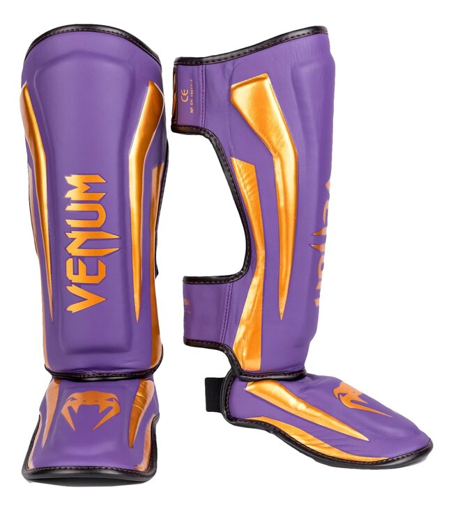 Venum Elite Schienbeinschoner Special Edition Dunkelviolett Gold.