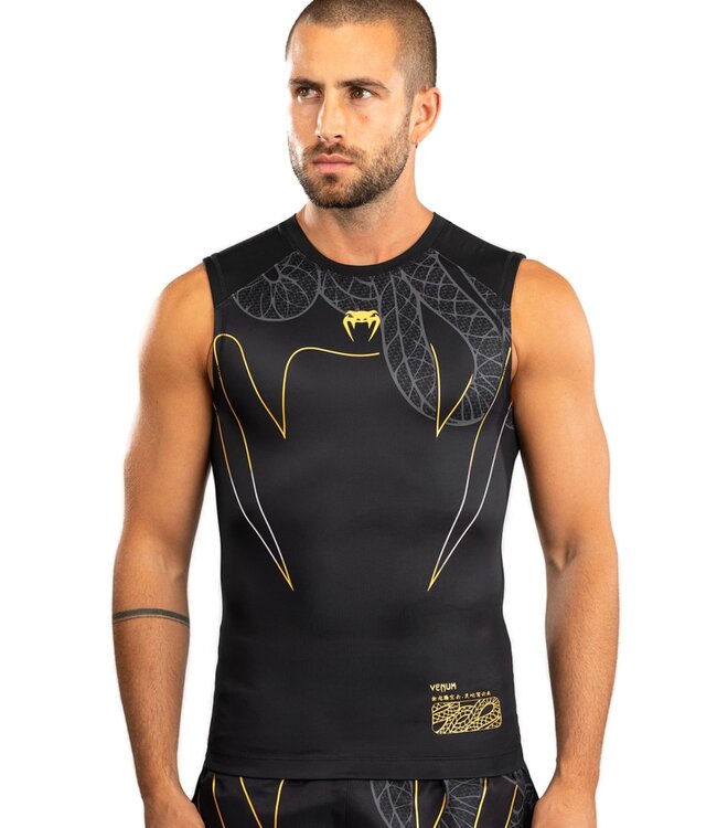 Venum Serpenti Ärmelloser Rashguard Schwarz Silber Gold.