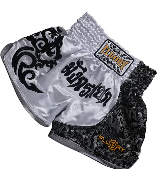 Fluory Dragon Muay Thai Shorts White Black