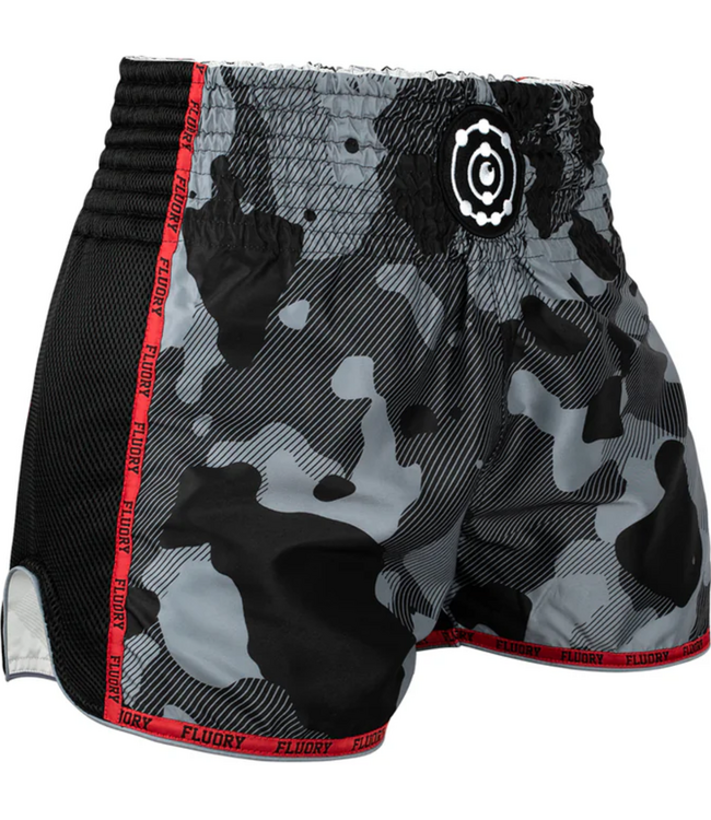 Train hard, move freely and fight in style with the Fluory Muay Thai Kickboxing Shorts Camouflage Black Grey.