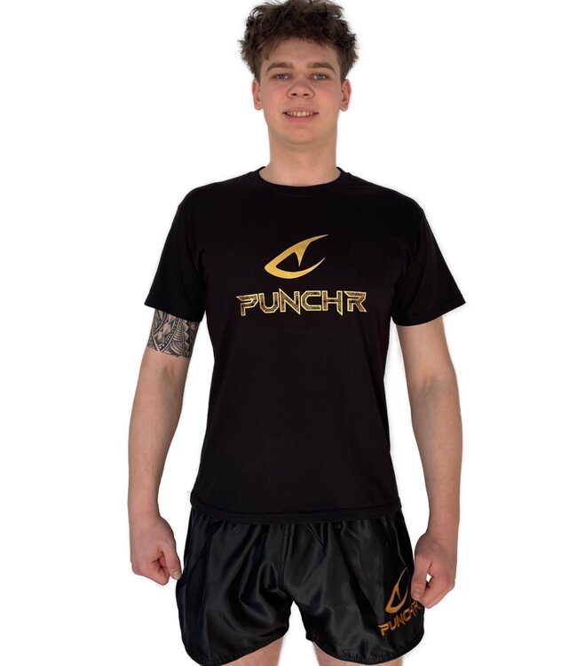 PunchR™ Logo's Sportswear T-Shirt Kids Cotton Black Goud.