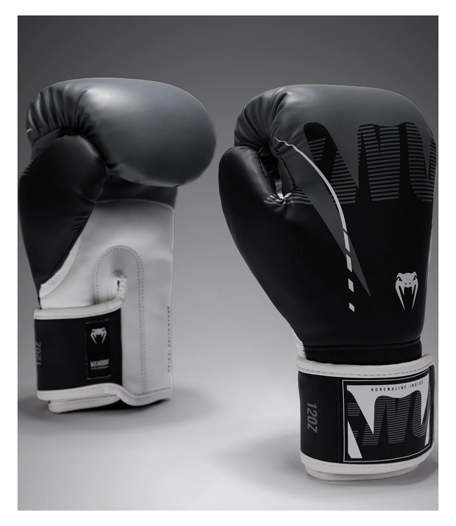 Venum Adrenaline Boxing Gloves Black Silver Grey.