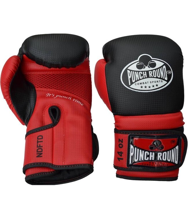 Punch Round Bokshandschoenen Combat Sport Carbon Kids Zwart Rood.
