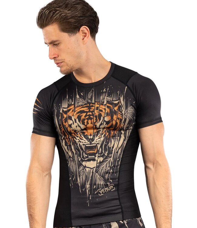 De Venum Tiger Rash Guard is ideaal voor grappling, BJJ en MMA. Het is ontworpen om bescherming te bieden tegen huiduitslag, brandwonden en schaafwonden, terwijl het totale bewegingsvrijheid biedt tijdens stoten en grondwerk.